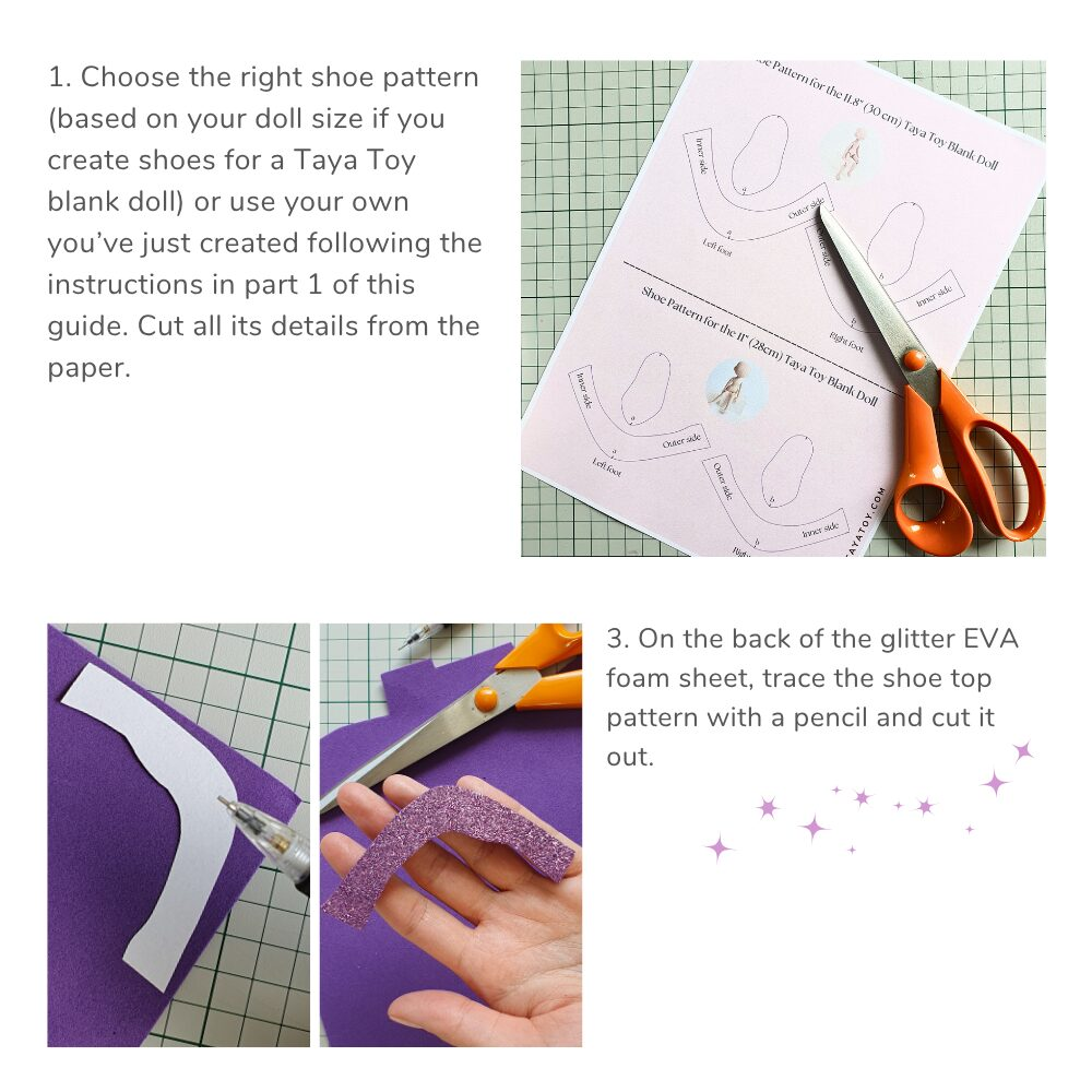 • Printable patterns of shoes that fit two Taya Toy dolls