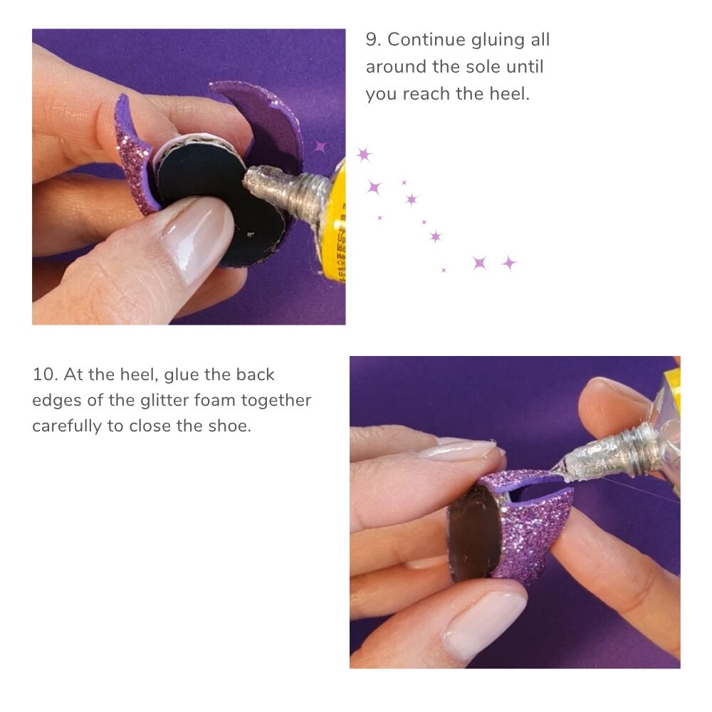 Nope! Just basic craft tools like paper, glue, tape, scissors — and a sparkly foam sheet if you’d like to match the look!
